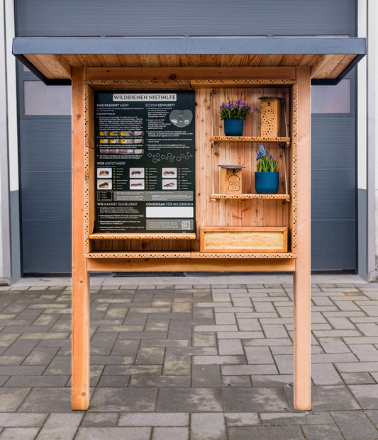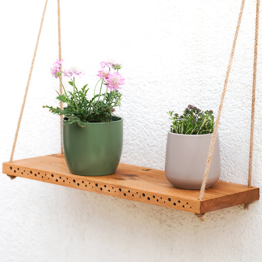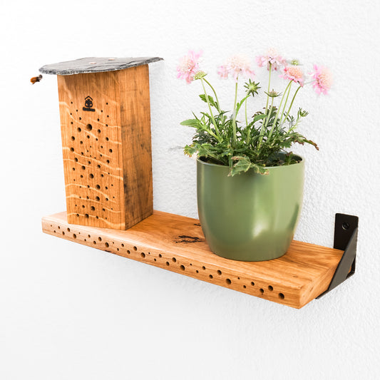 Unser praktisches Bienenregal - Nisthilfe trifft Abstellfläche. Optionen: Juteseil, Winkel oder Riemen