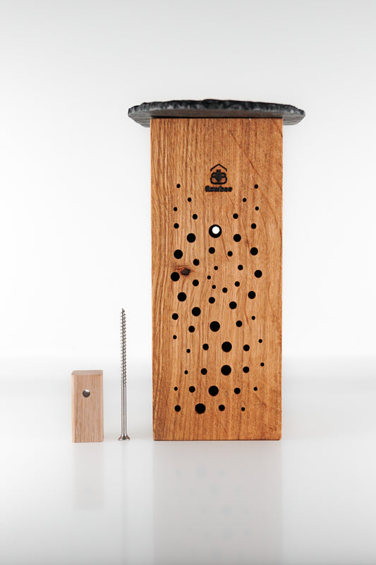 Ich habe nun seit zwei Jahren dieses Bienenhotel an Neben–Türeingang hängen, wo ich mehrmals Täglich vorbeilaufe. Im Frühjahr kommen dann die ersten Mauerbienen und u.a. Maskenbienen habe ich auch schon beobachten können. Alles in allem ein sehr schönes Naturkino, wo immer etwas los ist und spannend mitzuverfolgen wo wieder Pollen gebunkert und Eingänge verschlossen werden. Hochwertig die Materialien und auf jeden Fall langlebiger als irgendwelche Blechdosen mit Papierröllchen! Preislich auch im Rahmen, so dass es sich auch gut verschenken lässt. Ideal für Leute die sich nichts wünschen, oder schon alles haben😃